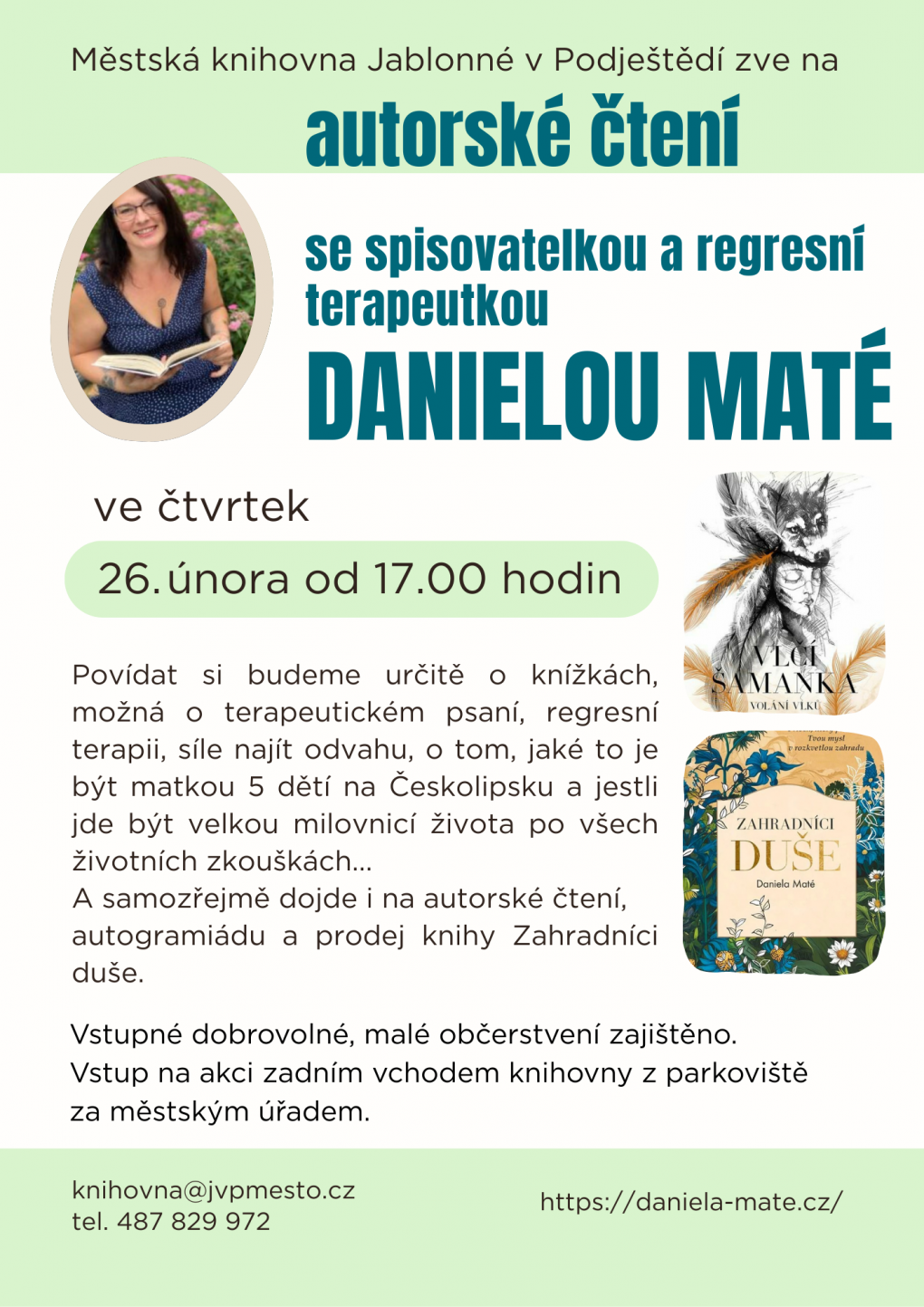 26.2.2026 - Autorské čtení se spisovatelkou a regresní terapeutkou Danielou Maté