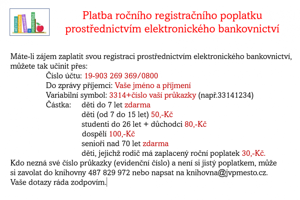Platba registrace prostřednictvím elektronického bankovnictví.